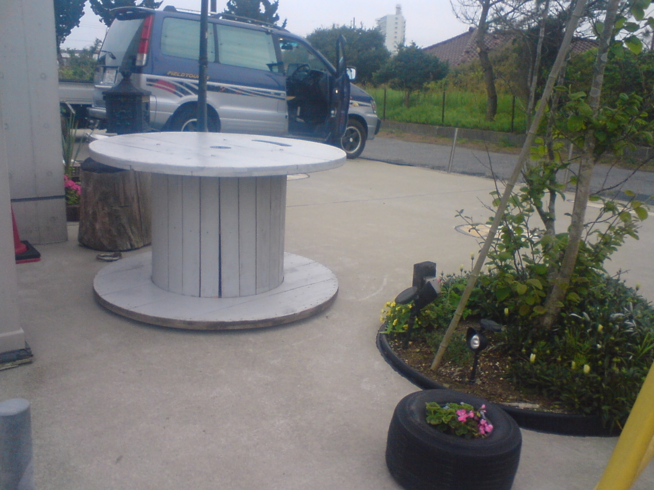 直径1.5メーターのテーブルができました真ん中に穴が開いていますのでパラソルを立て