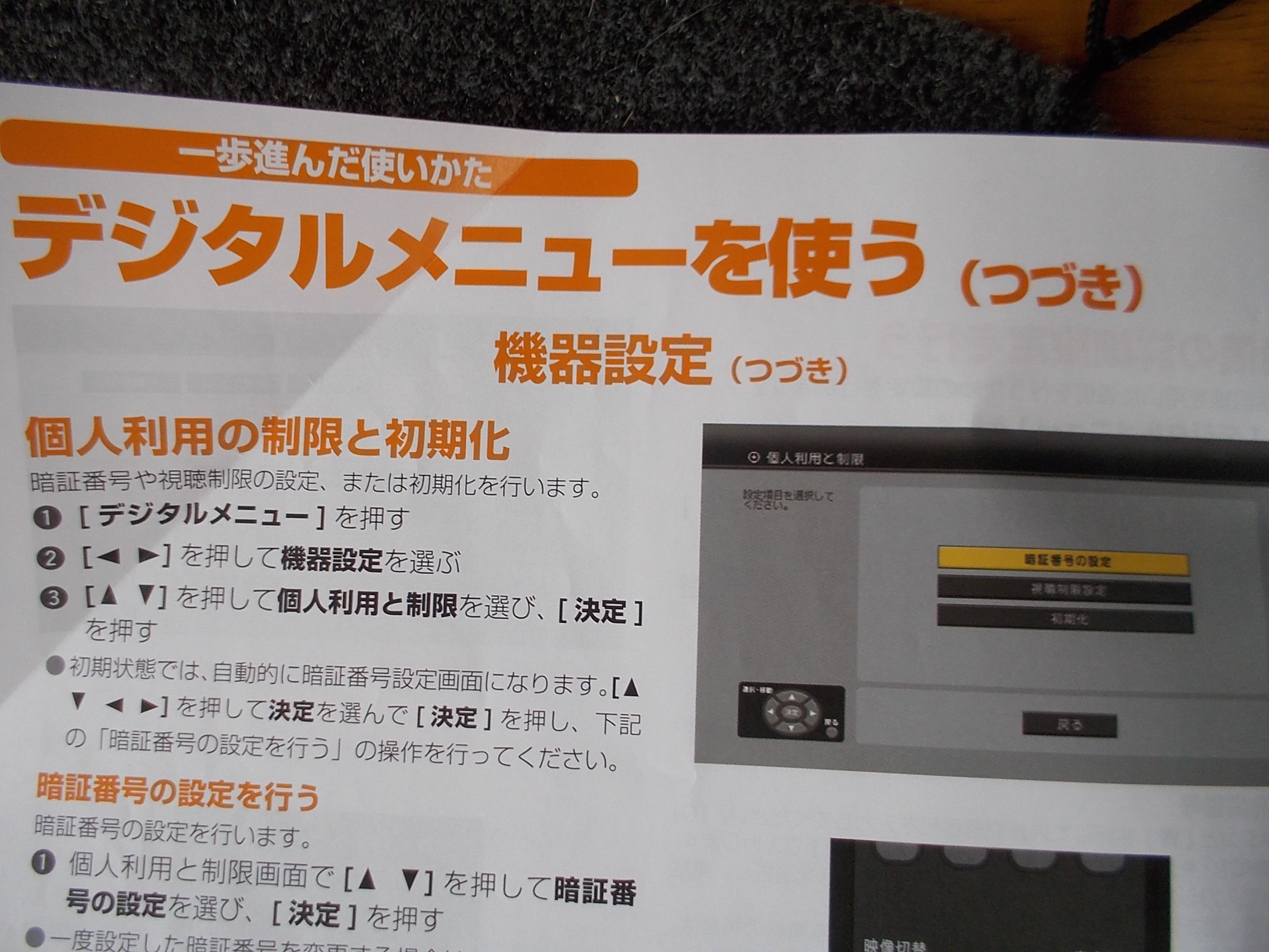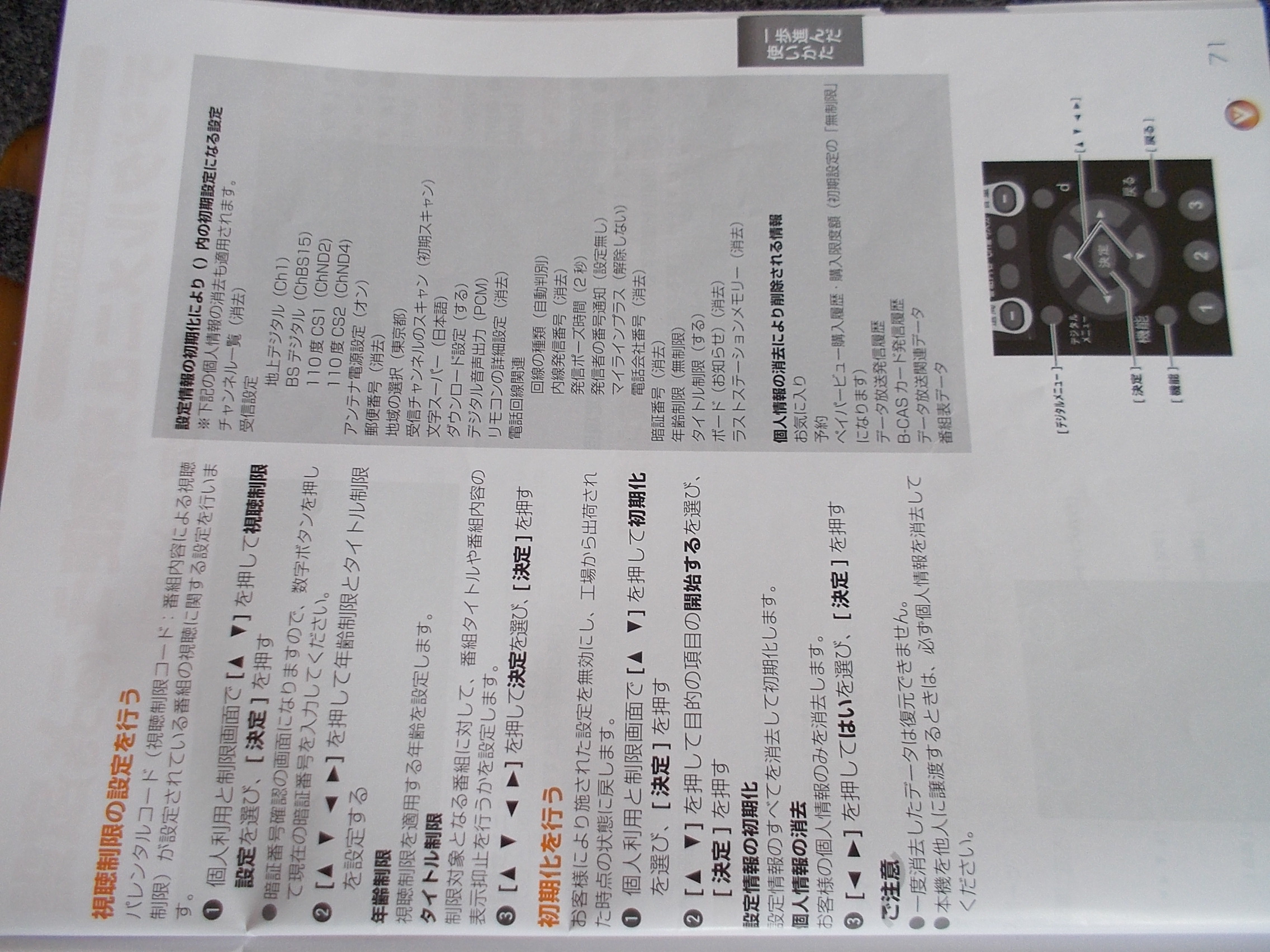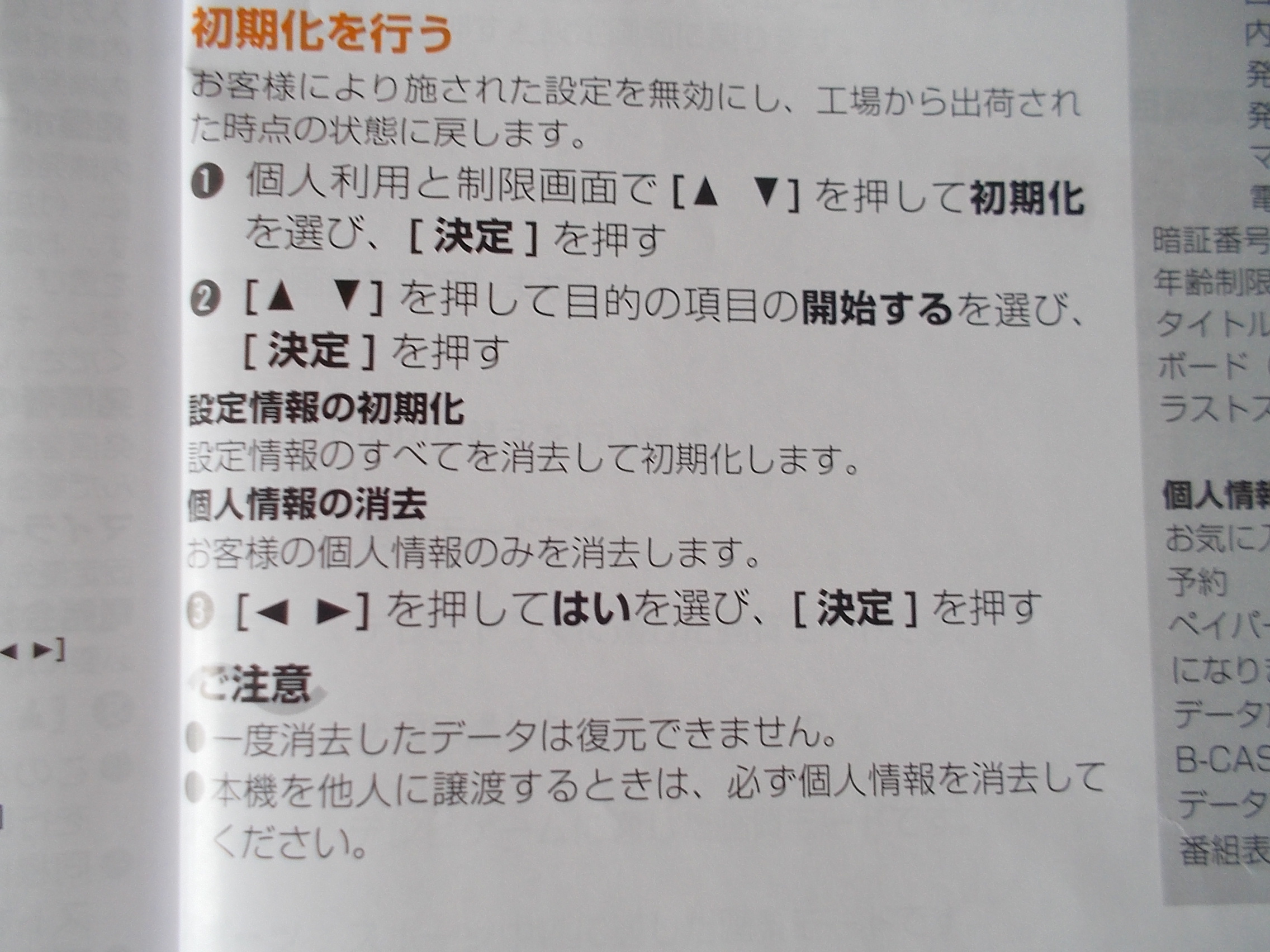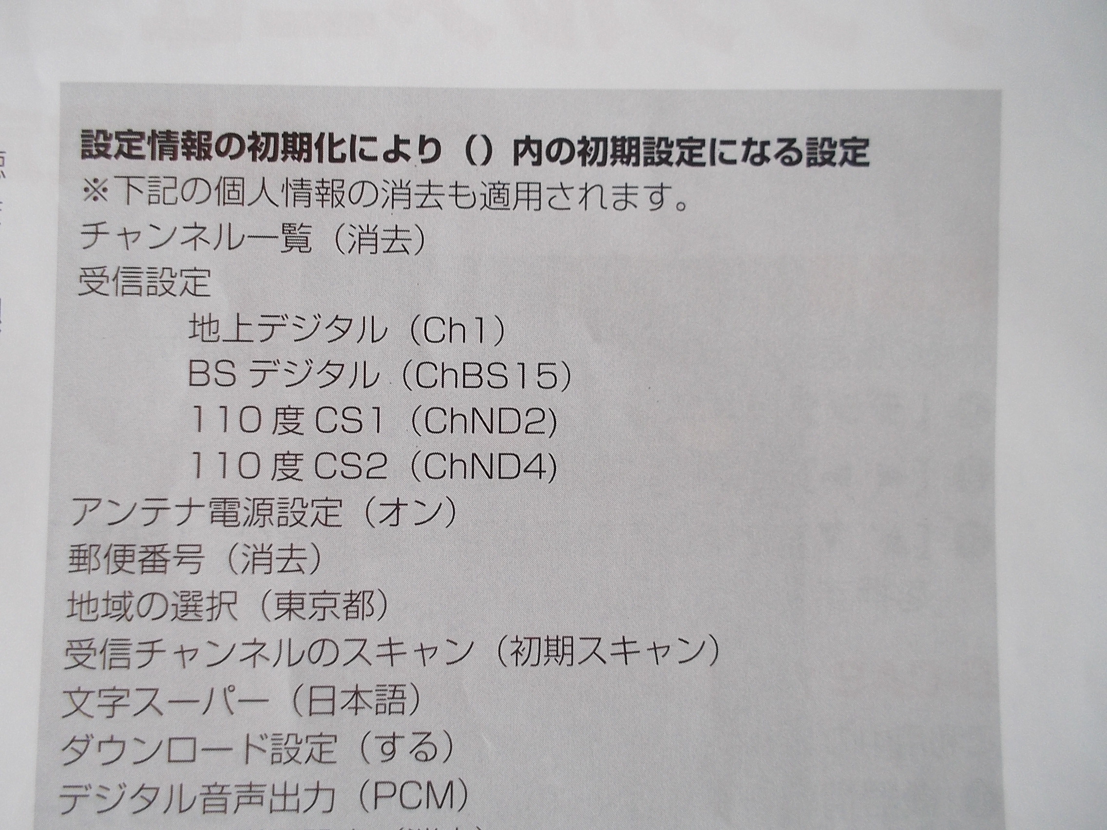 個人情報の制限と初期化の 初期化を行うと 初期化されBSアンテナ電源がオンに成ります。